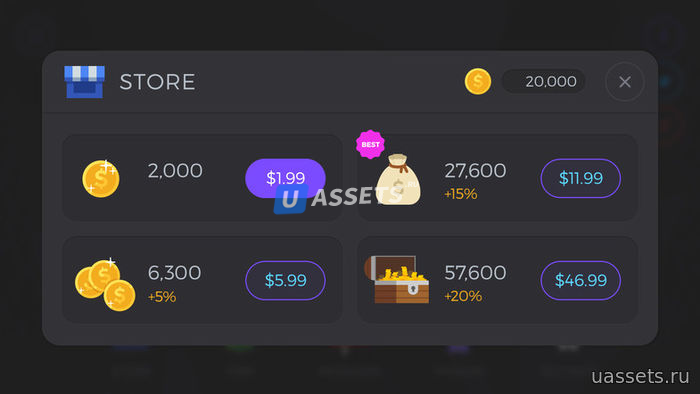 Заголовок, Сообщение, Миссия, Настройка, Магазин, Жизнь магазина, Этап, Завершение, Пауза, Выход из всплывающего окна, Воспроизведение, Элемент, Строка значков кнопок, Лицевая сторона значков кнопок, Значки картинок, Текст действия, Алфавит