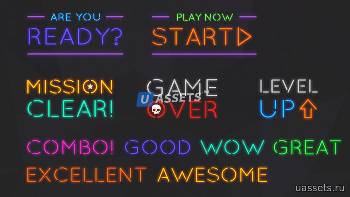 -> Неоновые шрифты поддерживают только английские заглавные буквы, !, ?. (Другие специальные символы не поддерживаются. Смотрите Предварительный просмотр скриншота)