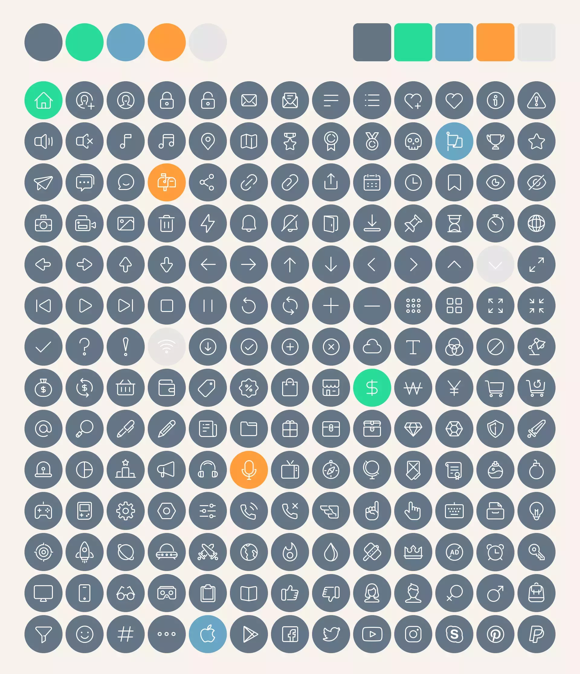 - 182 значка кнопок