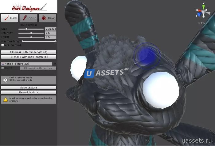 С помощью одного компонента вы можете нарисовать пряди на сетке. Вы можете добавлять слои с различными настройками и материалами.