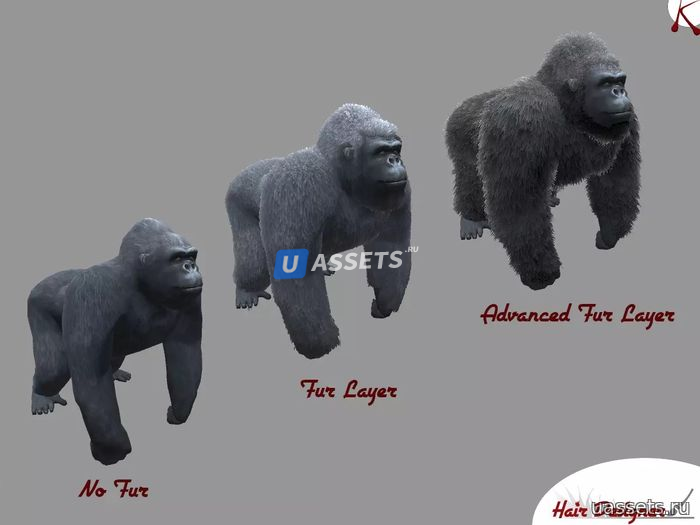 Волосы и мех деформируются так же, как и оригинальная сетка. Анимация следует за движением костей и инерцией.