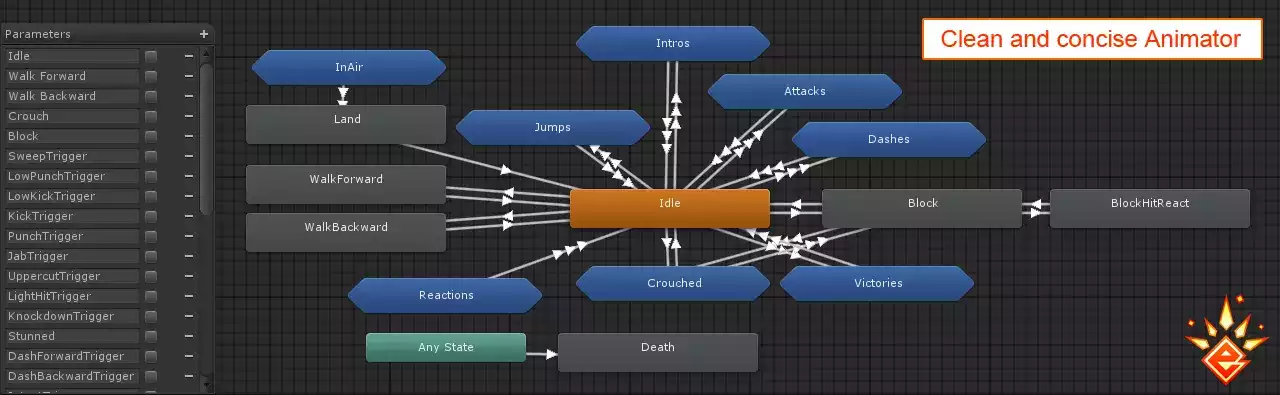 -Чистый лаконичный контроллер Animator, готовый к подключению к вашему коду.