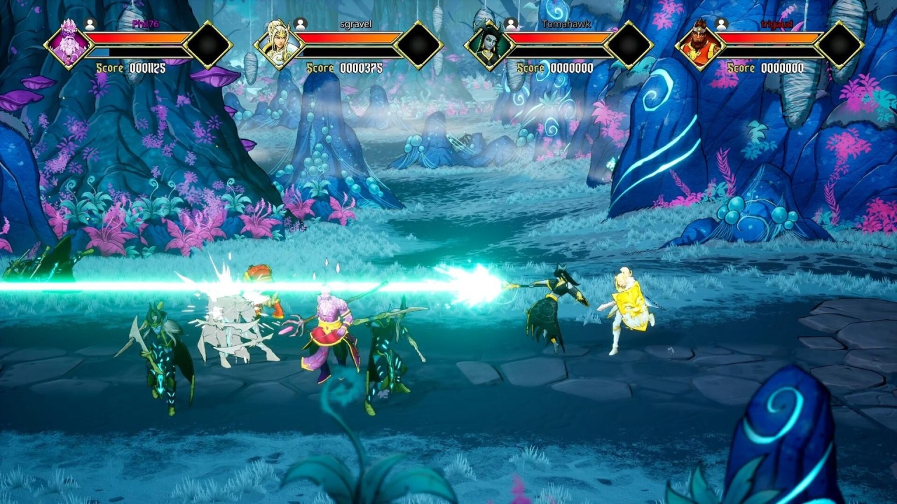 Цель таких поединков — стать последним выжившим бойцом. Особую остроту многопользовательским сражениям придает механика проклятий, вносящая элемент непредсказуемости. Игроки могут активировать эти эффекты прямо во время боя, чтобы нарушить планы соперников. Проклятие может уменьшить героя, инвертировать управление или ненадолго превратить его в беззащитную лягушку. Эта механика позволяет переломить ход схватки, сбив оппонента с привычного ритма. Визуальный стиль проекта уникален: он сочетает детально прорисованные 2D-арты, созданные вручную, с трехмерным игровым окружением.