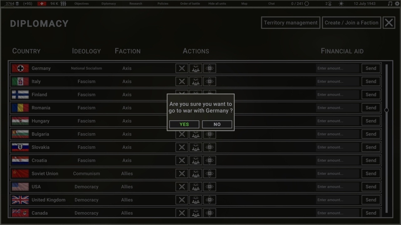 Одиночные миссии в HoS включают в себя функции базовой дипломатии, стандартное представительство и подразделения или НАТО, захват территории или юнитов, а также ведение боевых действий и управление армией. Выйдет перемещать войска, формировать отряды и прорабатывать различные стратегические решения. В игре есть режим редактора, где получится создавать локации, юнитов, страны и квесты, а также "случайная генерация сценариев".В процессе прохождения, юзеров ожидает: