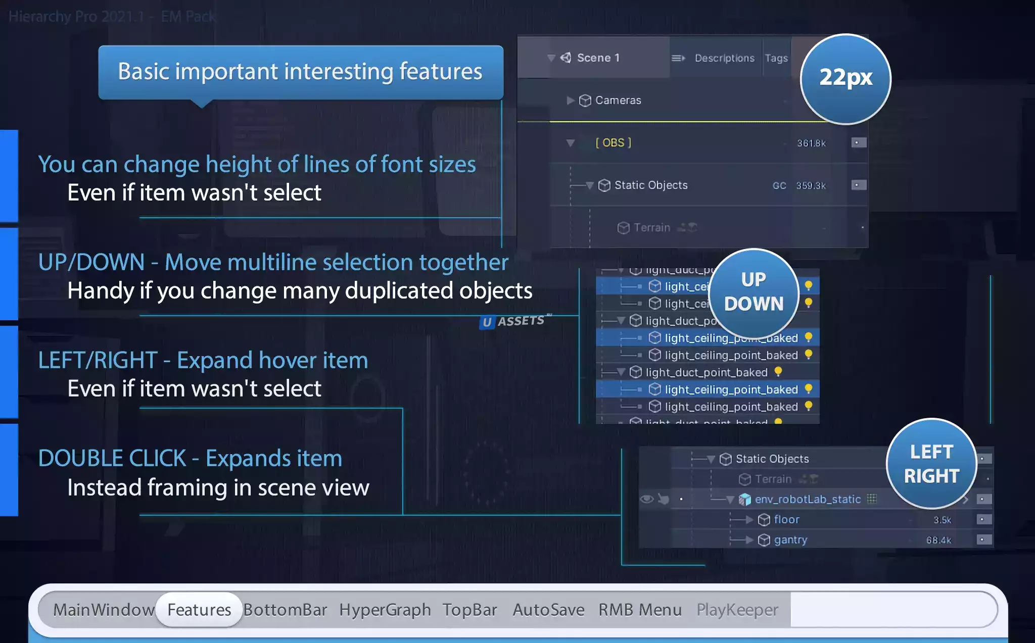 Слои / теги / Порядок спрайтов / Аудио / Описание / Информация о памяти / Статические флаги / Текст пользовательского интерфейса / Целевой флаг RayCast и так далее...