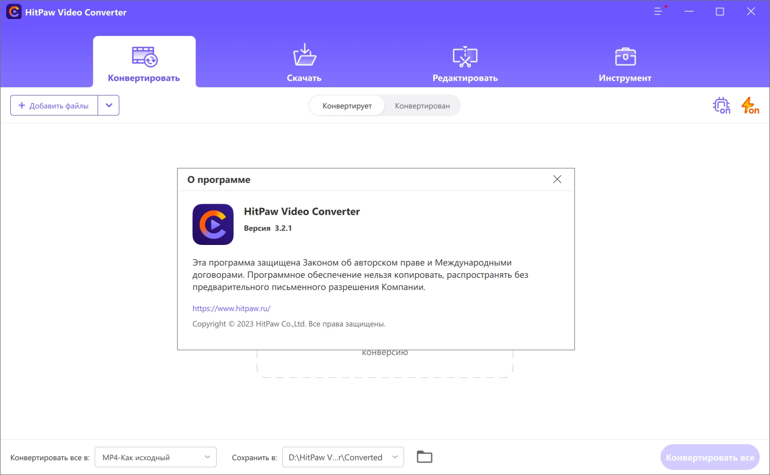 Ключевой особенностью HitPaw Video Converter 3.1.2.4 x64 является высокая скорость обработки — конвертация происходит до 60 раз быстрее без потери исходного качества. Помимо конвертации, программа позволяет загружать видео и аудио с более чем 1000 популярных онлайн-платформ, таких как YouTube, TikTok, Instagram, Facebook, Vimeo, SoundCloud и других, включая субтитры в форматах SRT, ASS, VTT.