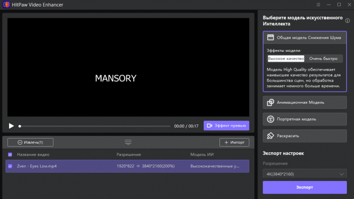 HitPaw Video Enhancer — это мощное программное обеспечение для улучшения качества видео с использованием искусственного интеллекта. Этот инструмент позволяет легко повышать разрешение видео, улучшать четкость и устранять шумы, делая даже старые или низкокачественные записи более яркими и детализированными. HitPaw Video Enhancer поддерживает обработку видео до 4K и выше, обеспечивая высокую четкость и реалистичность изображения.