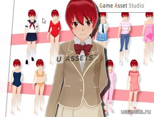 В дополнение к 10 моделям в различных типах одежды, таких как школьная форма, обычная одежда, купальники, пижамы и спортивные костюмы, этот набор также включает 65 анимаций, таких как ходьба, прыжки, приветствия и драки.