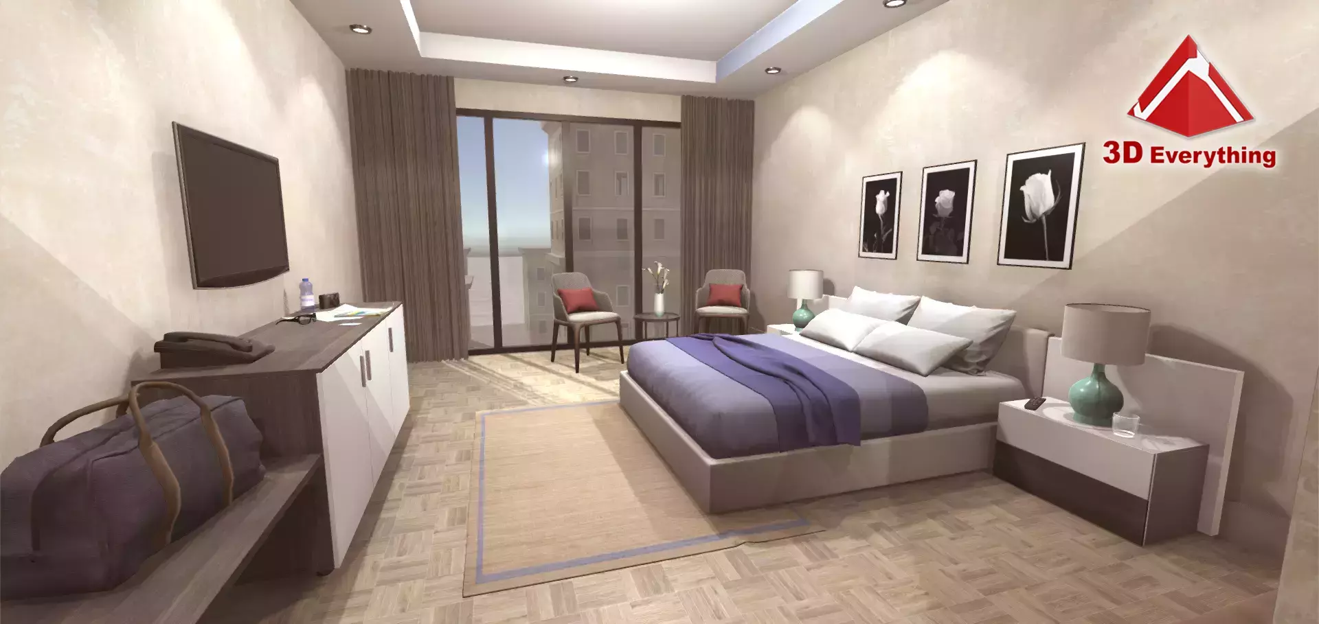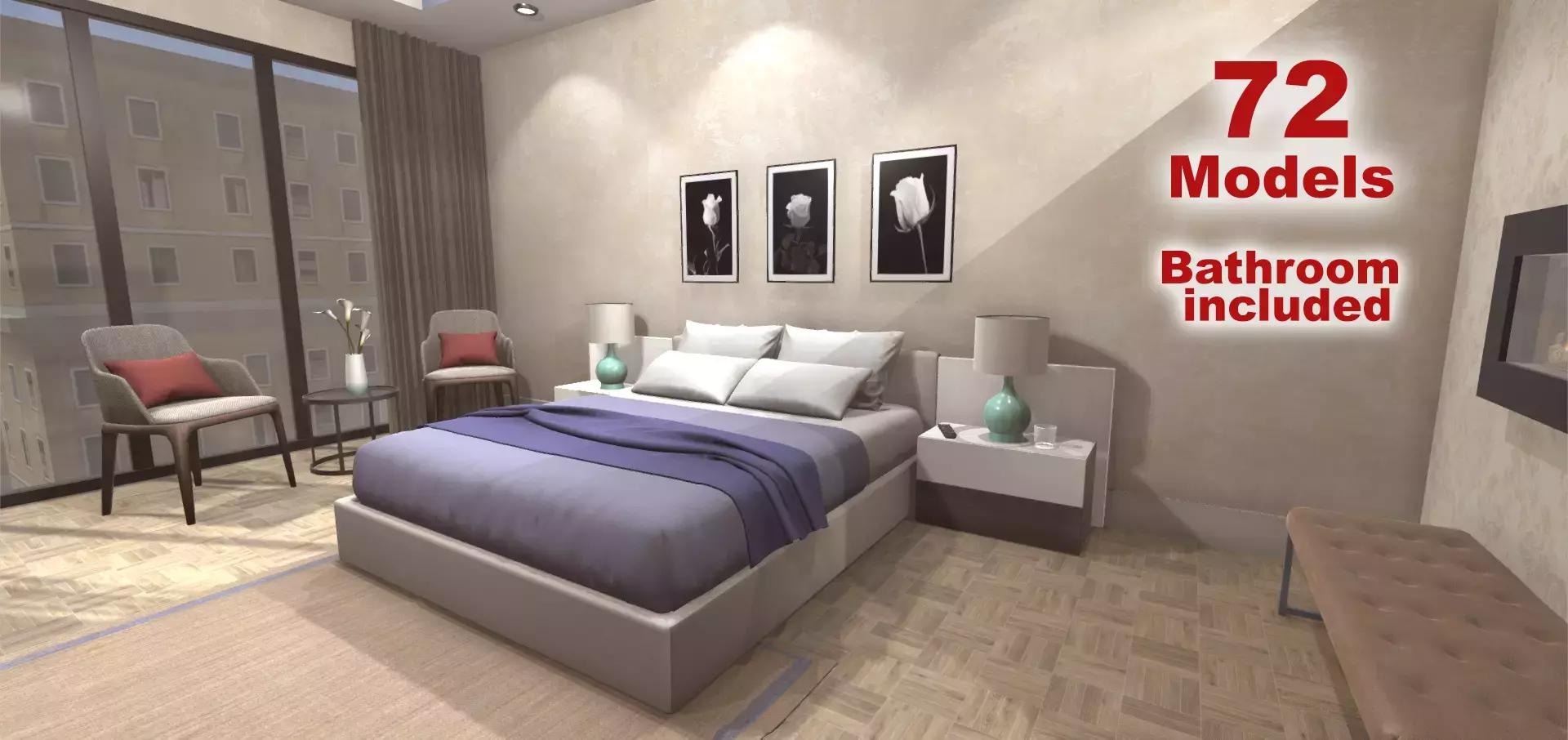 Гостиничный номер 2 - это реалистичная сцена с 72 моделями, готовыми для 3D-проектов и игр.