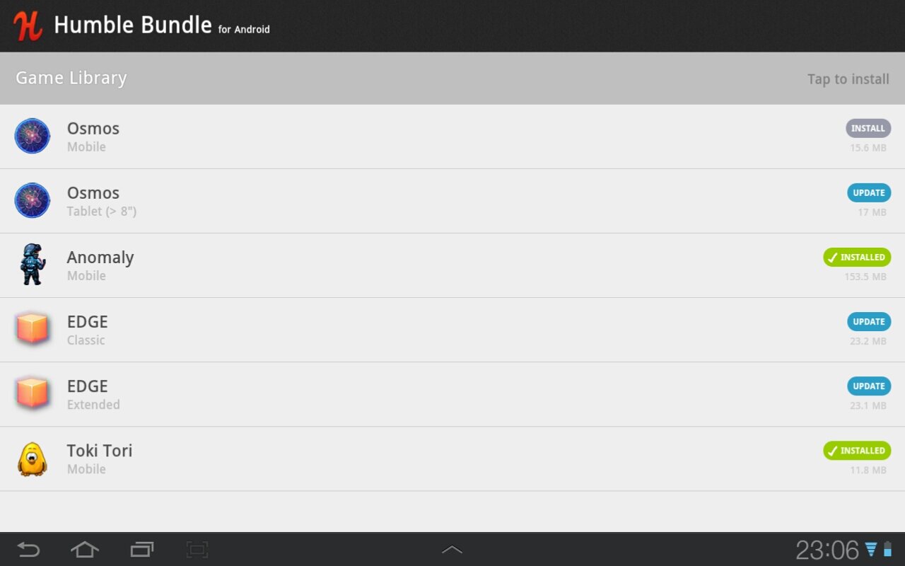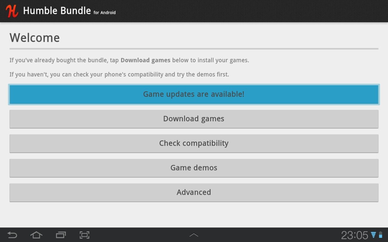 Приложение HUMBLE BUNDLE 1.2.1 своевременно уведомляет пользователей о доступных обновлениях и предоставляет удобный доступ к библиотеке приобретенных игр. Программа HUMBLE BUNDLE 1.2.1 упрощает процесс загрузки, для чего требуется ввести специальный код подтверждения, отображаемый непосредственно в интерфейсе приложения.