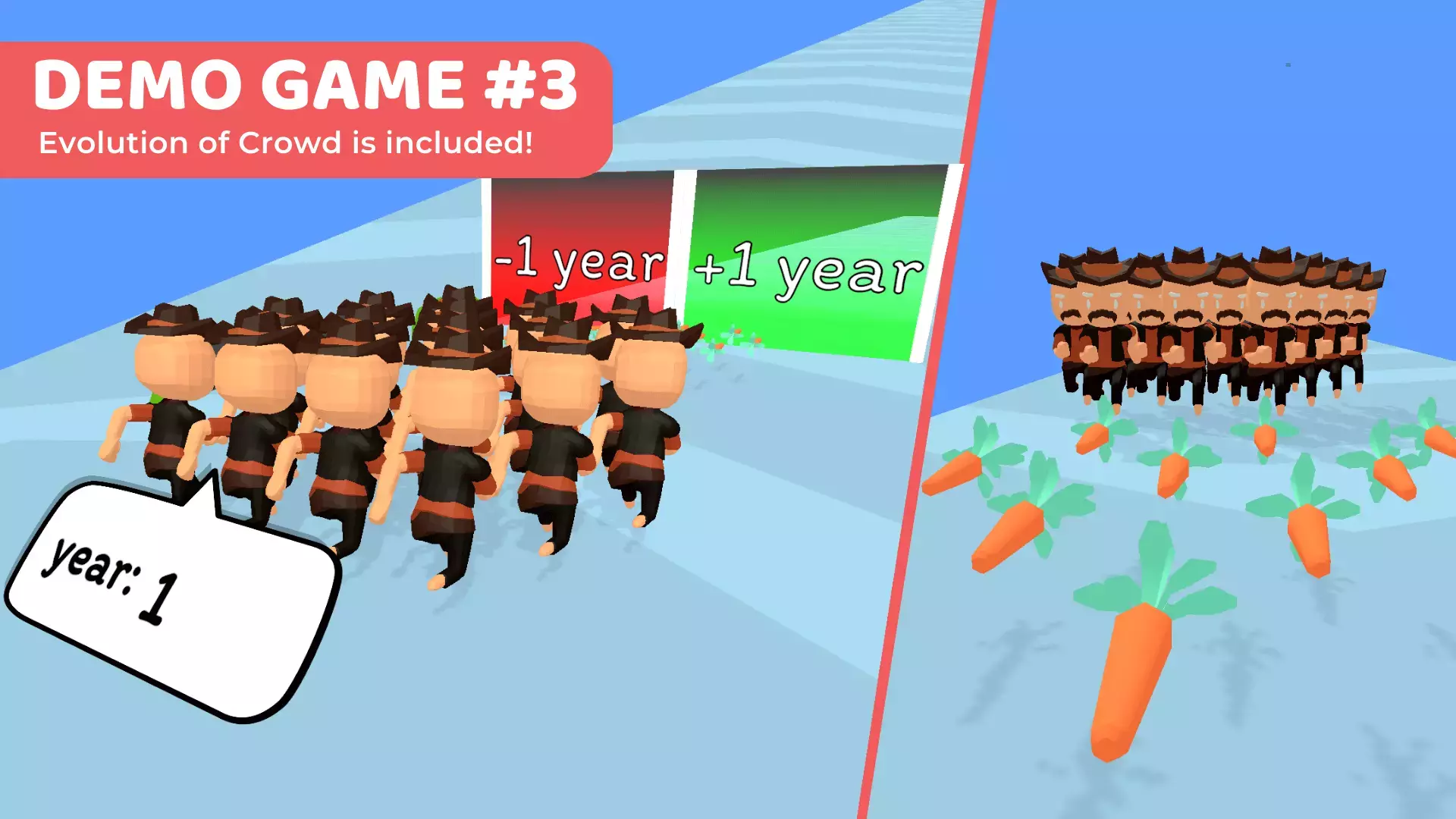 Hypercasual - Runner Starter Kit - это универсальный инструмент, позволяющий создавать самые разнообразные игры-бегалки. Создаете ли вы классические игры-бегалки, в которых персонаж собирает предметы и уворачивается от препятствий, или изучаете более сложные концепции, такие как симуляция толпы или геймплей на основе стеков - этот набор поможет вам.