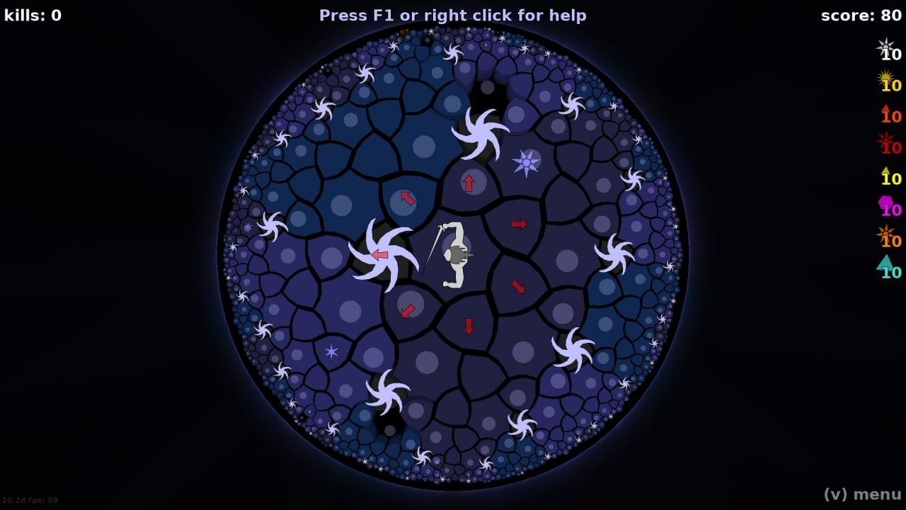 HyperRogue – это уникальная головоломка с видом сверху, которая выделяется необычным визуальным стилем и сеттингом. В этой игре вы становитесь одиноким путешественником, заброшенным в неевклидовый мир. Ваша задача – исследовать его, собирая как можно больше ценных предметов для последующей продажи и получения прибыли. Однако главная цель – найти легендарную сферу Йендора. Основная сложность заключается в постоянной охоте монстров на вас, что заставляет быстро принимать и обдумывать каждое решение. Перемещение по карте происходит пошагово, по отдельным плиткам, представленным в разнообразных вариантах. Управлять персонажем в игре HyperRogue можно как с помощью контроллера, так и используя клавиатуру с мышью.