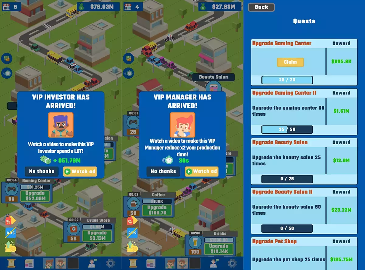 * Открывайте бизнес и улучшайте его, чтобы увеличить прибыль