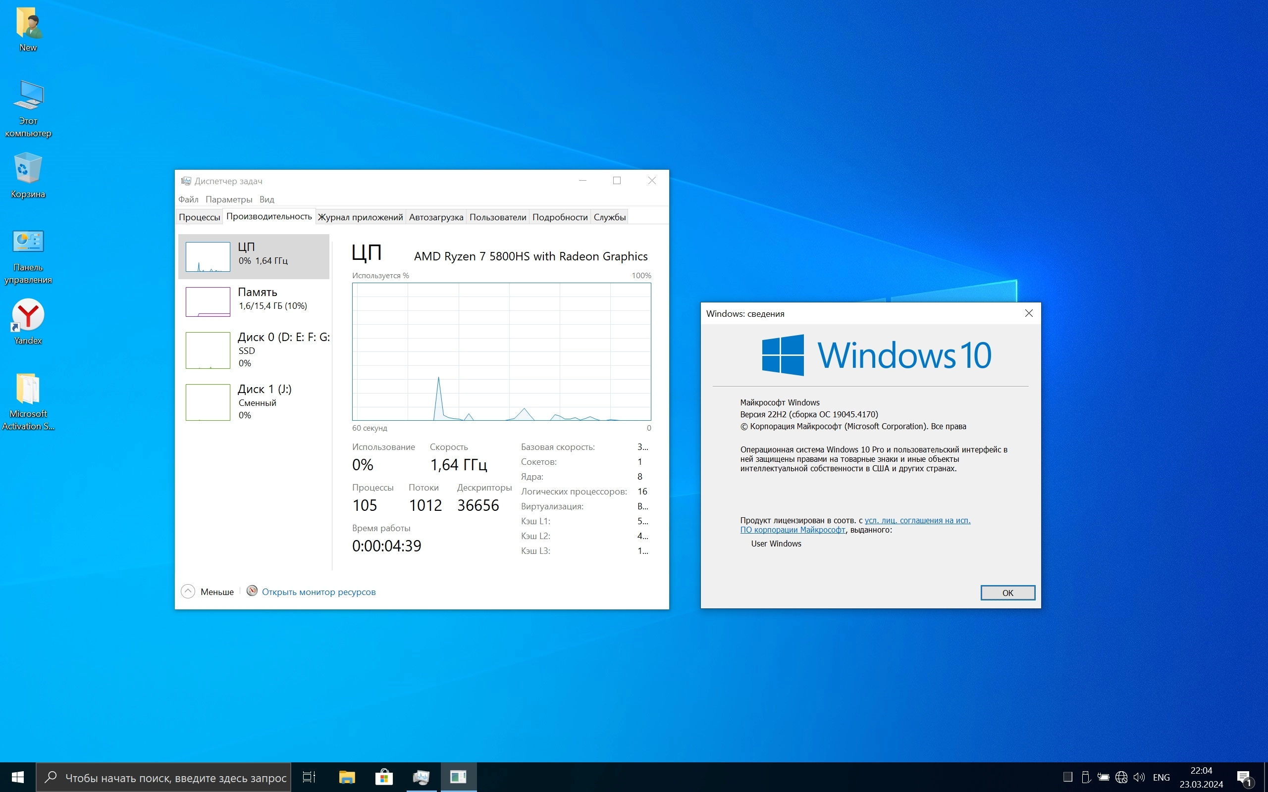 Версия: 22H2 Build 19045.4170 Очень быстрая и тихая сборка Windows 10 Pro.