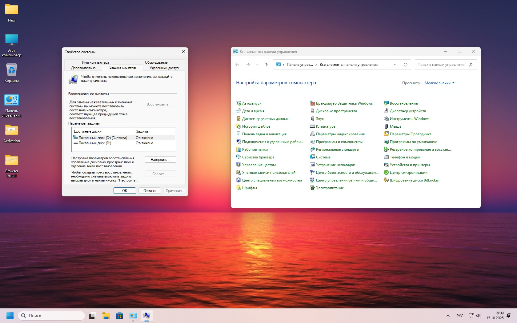 - Выключена система защиты (Defender).