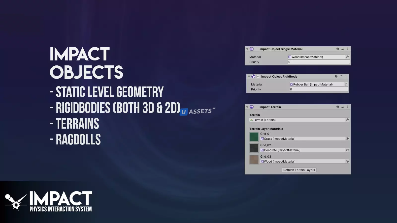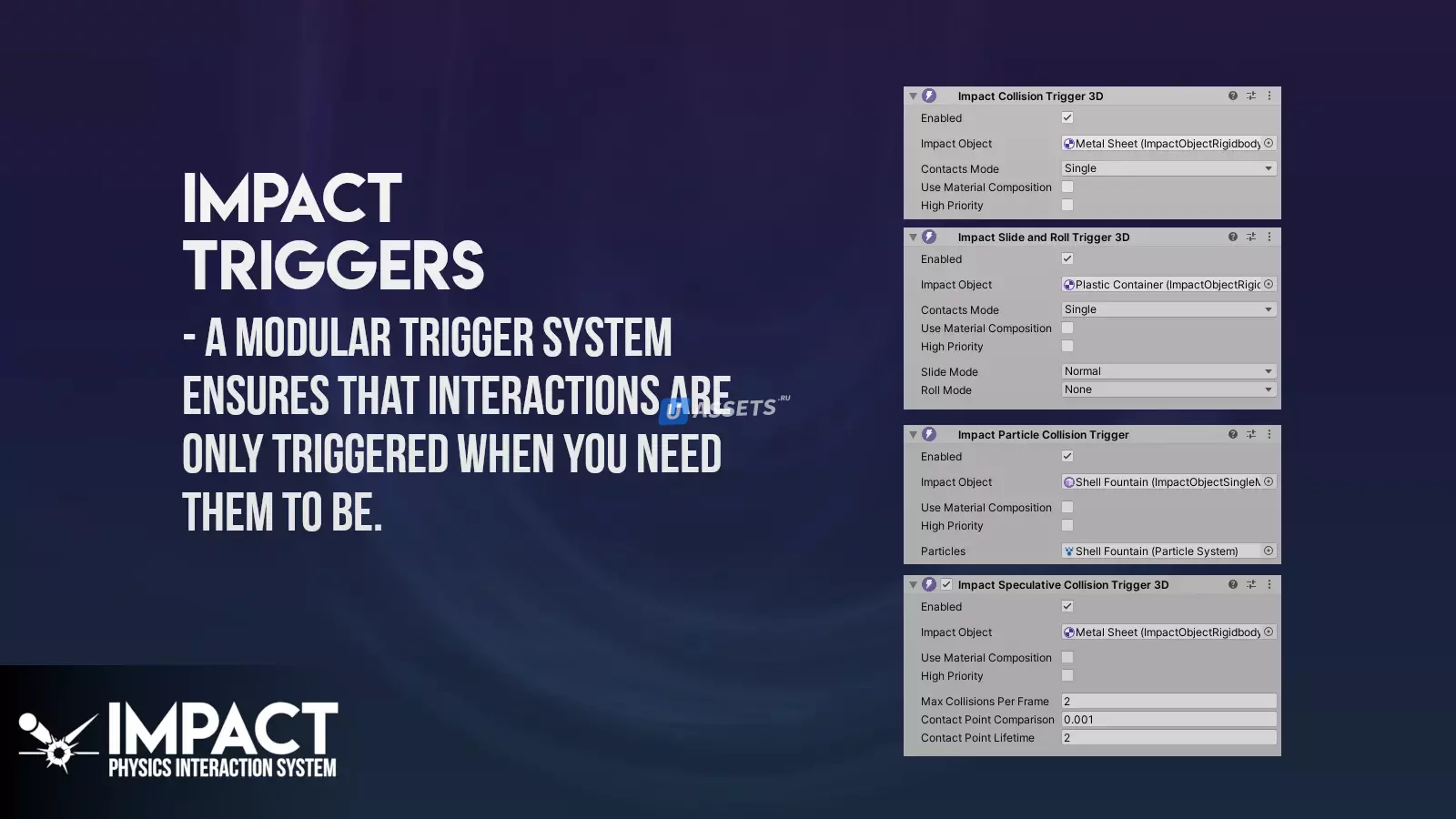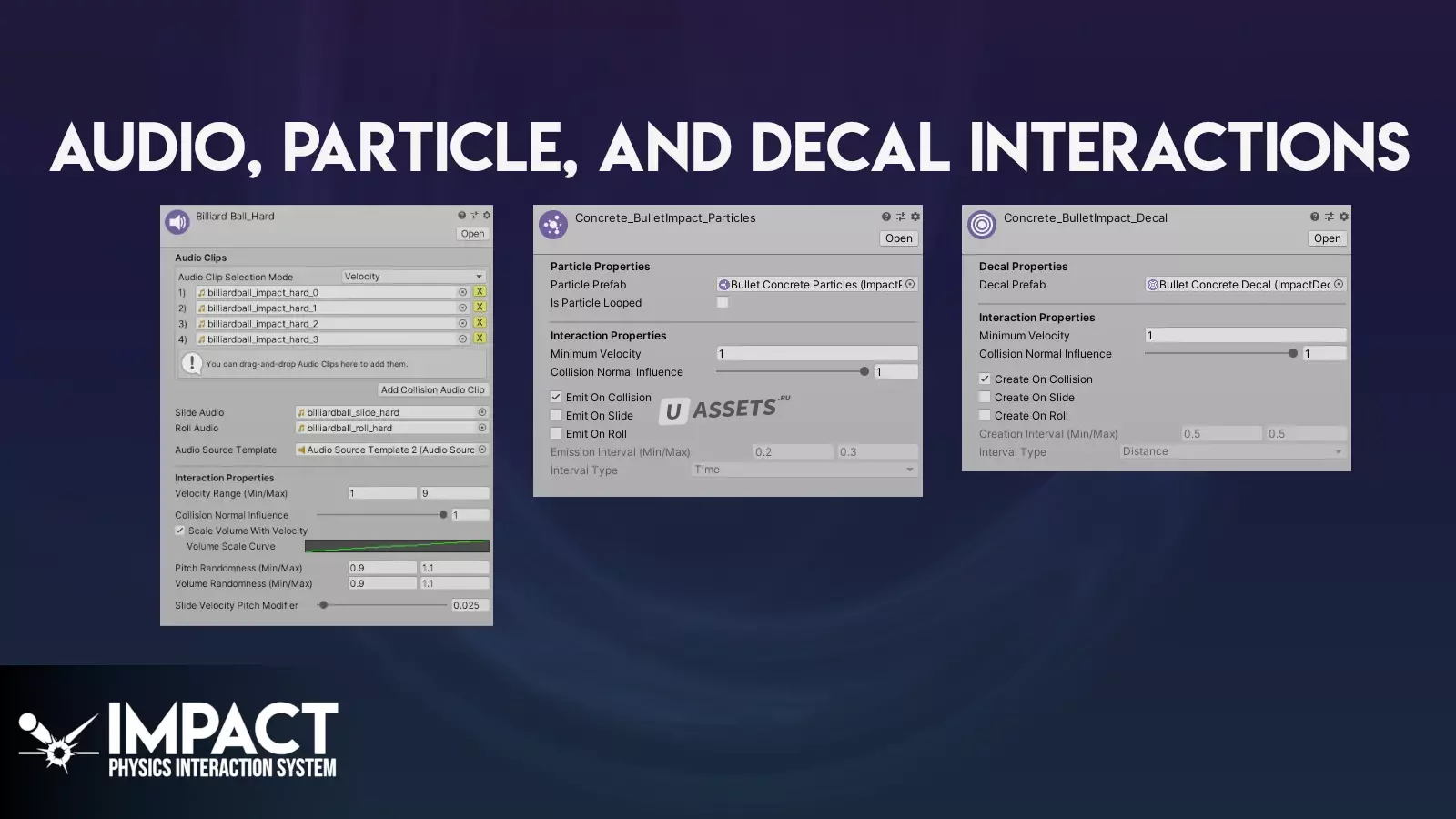 Impact - это мощная и гибкая система взаимодействия на основе материалов для создания таких взаимодействий, как взаимодействие звука, частиц и изображений.