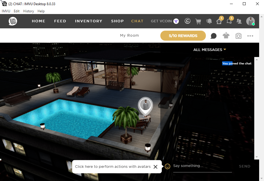 Помимо общения, пользователи могут участвовать в виртуальных мероприятиях, посещать различные 3D-локации и создавать собственные миры, а также разрабатывать и продавать контент, такой как виртуальная одежда и предметы, зарабатывая кредиты — виртуальную валюту. IMVU предоставляет богатые возможности для самовыражения и социального взаимодействия, при этом поддерживает микротранзакции и обмен валюты, что позволяет пользователям ускорить процесс получения виртуальных предметов или монет.