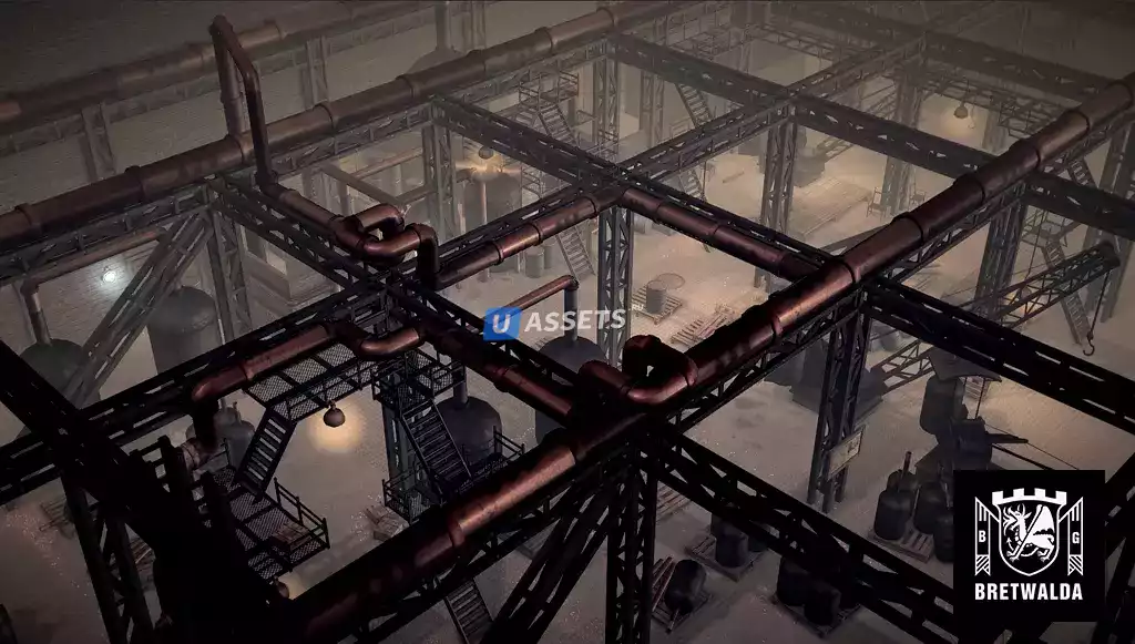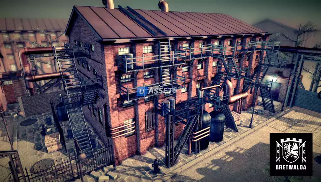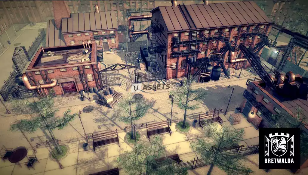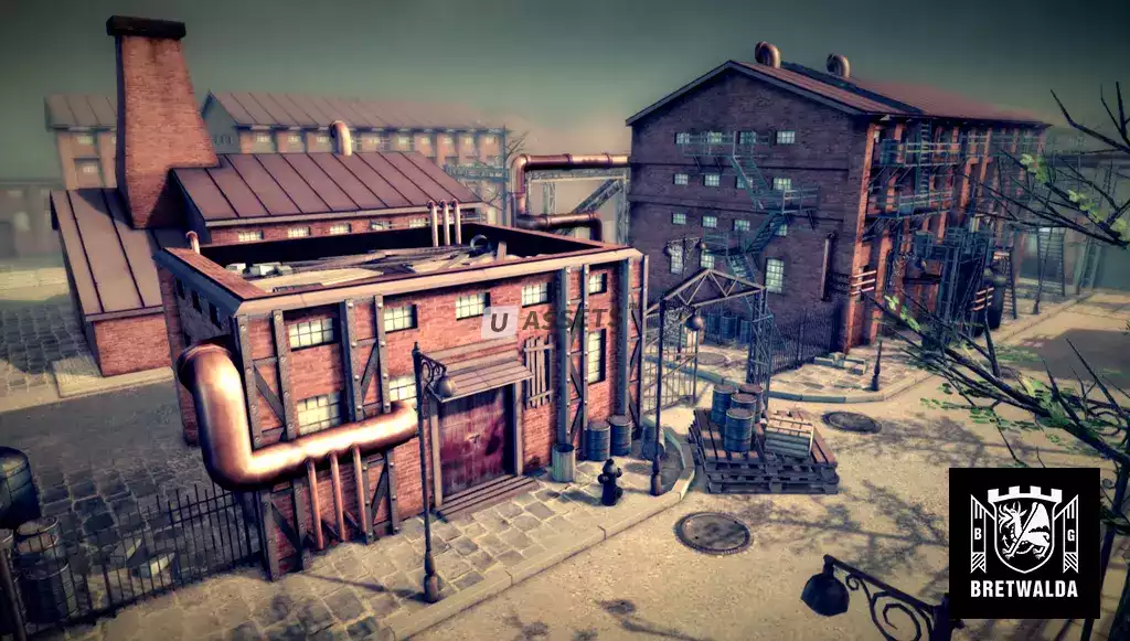 Пакет Industrial City Pack позволяет создавать стильную среду промышленного города и интерьеры мастерских. В наборе есть все, что вы видите на картинке.