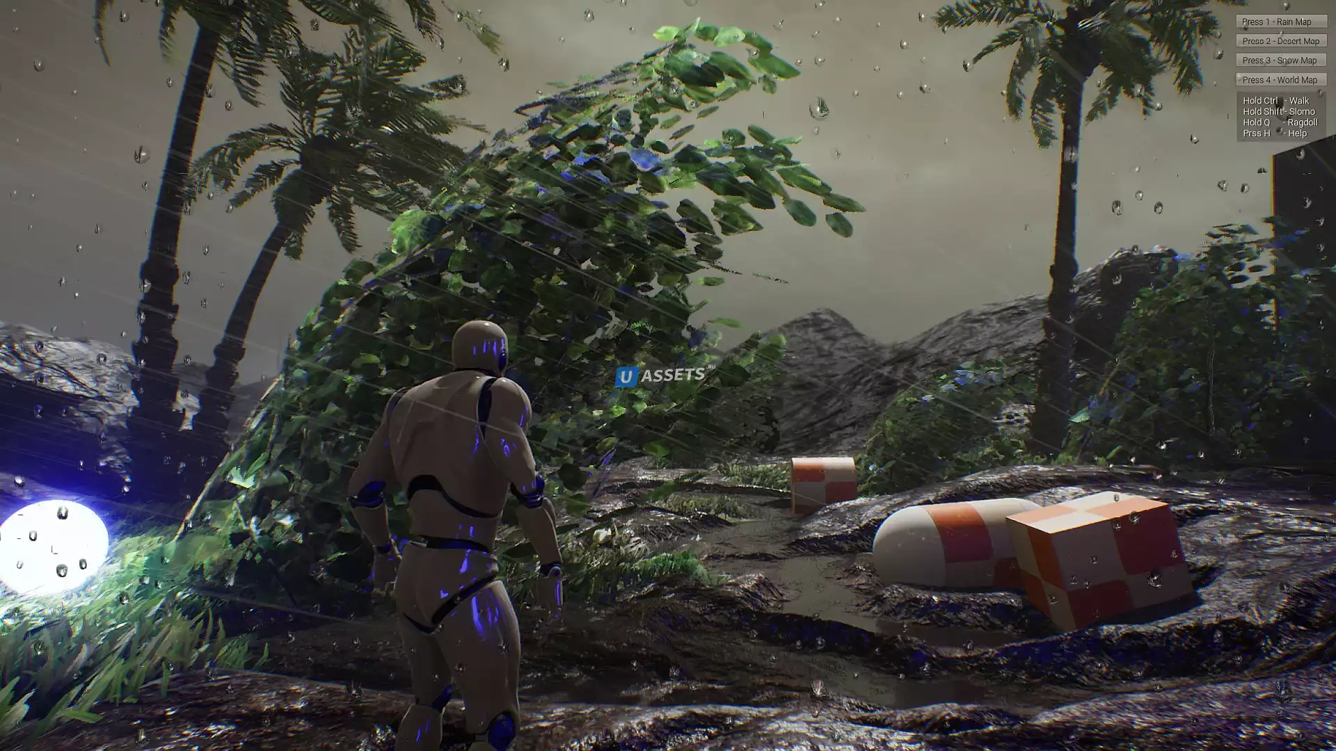 реактивные эффекты ветра, такие как осадки, наземная пыль, флаг, деревья, кусты, трава, излучатели