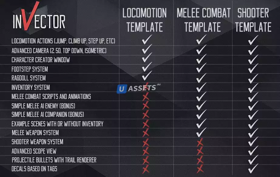 Шаблоны от третьего лица Invector помогут воплотить вашу игру в жизнь благодаря высококачественному контроллеру персонажей-гуманоидов, настройка которого занимает считанные минуты, у нас есть надежный и легко настраиваемый шаблон, чтобы вы могли сосредоточиться на создании своей игры уникальной.