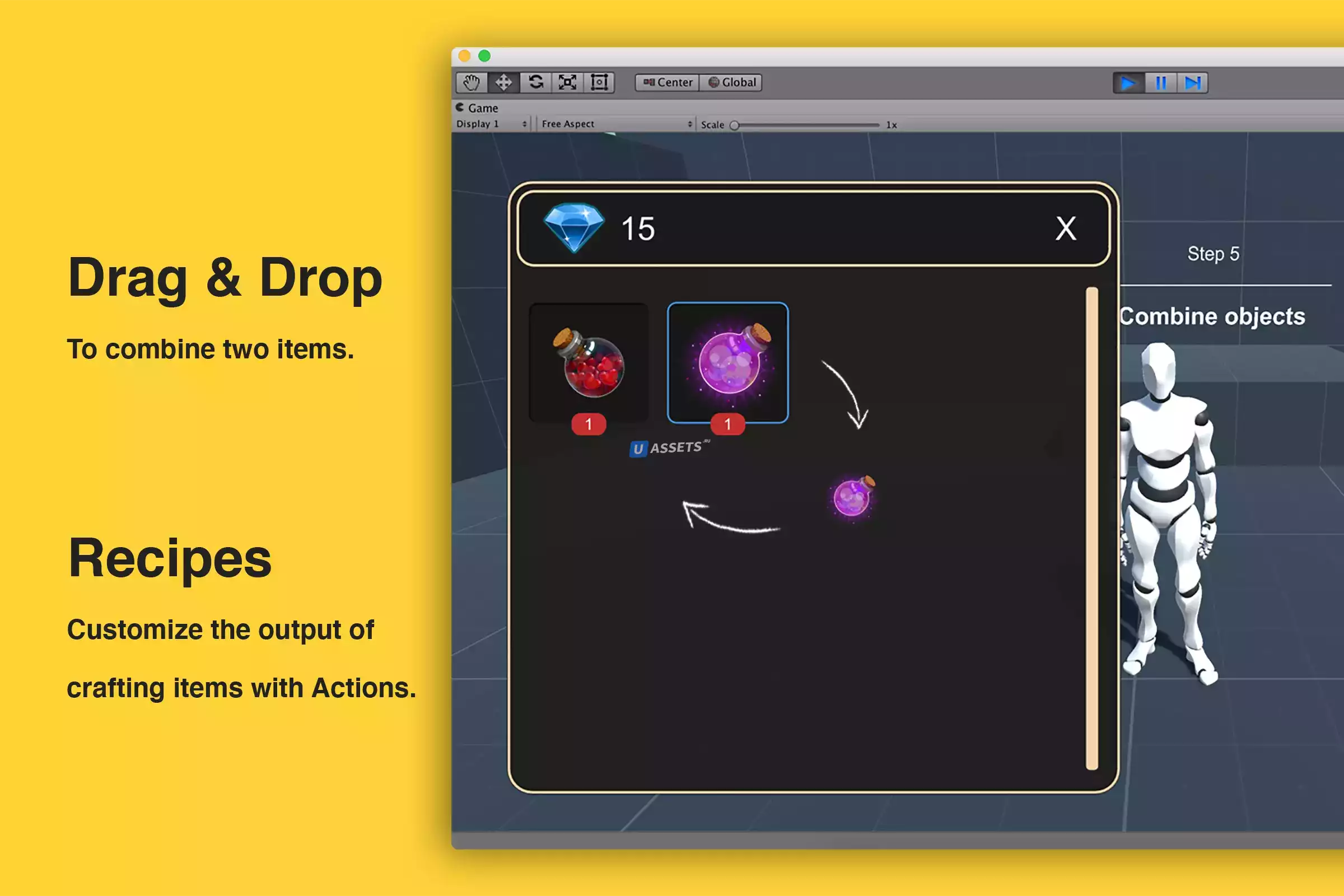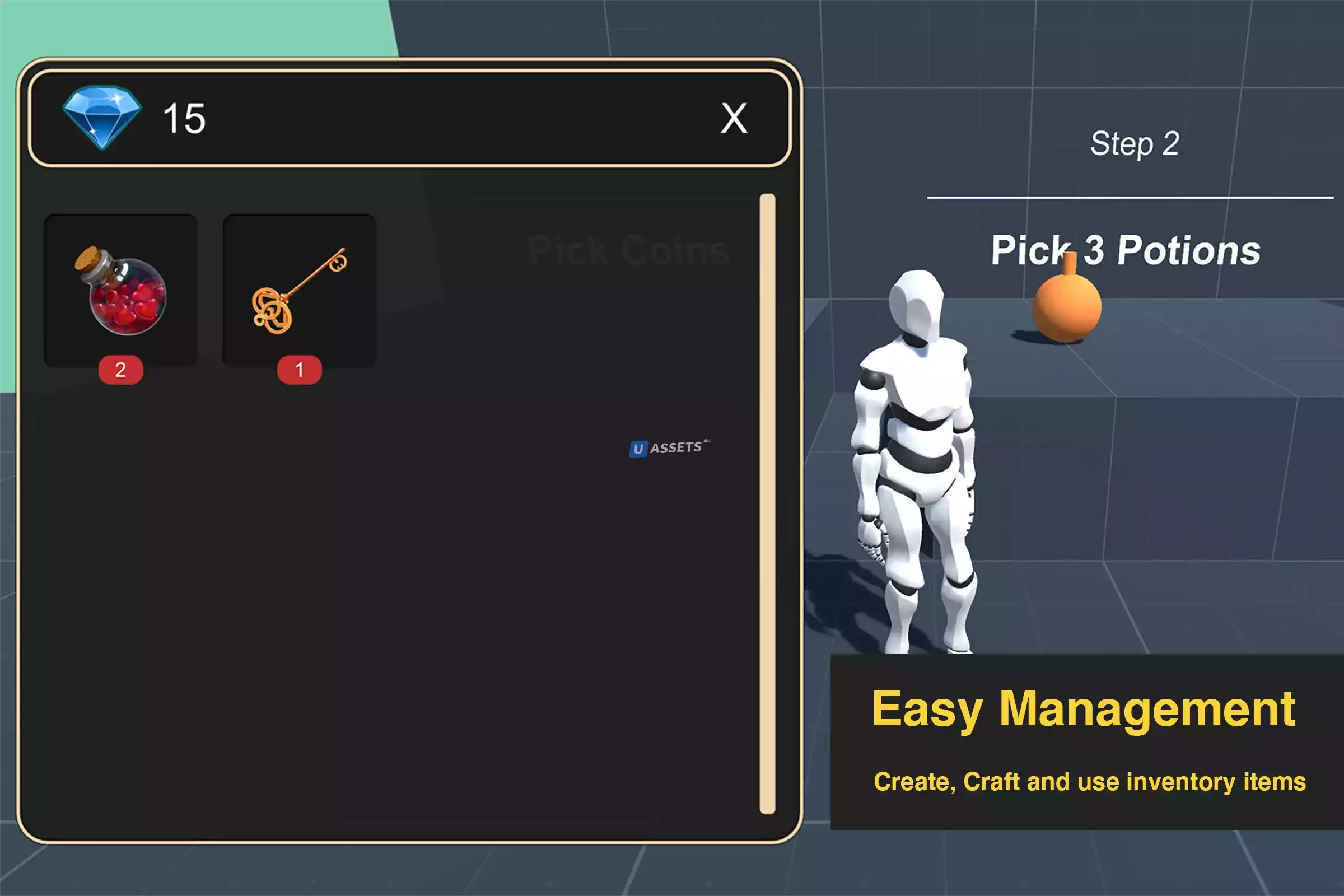 Инвентарь — это очень гибкий инструмент, созданный для Game Creator, который позволяет легко создавать предметы, управлять запасами и создавать предметы по рецептам.