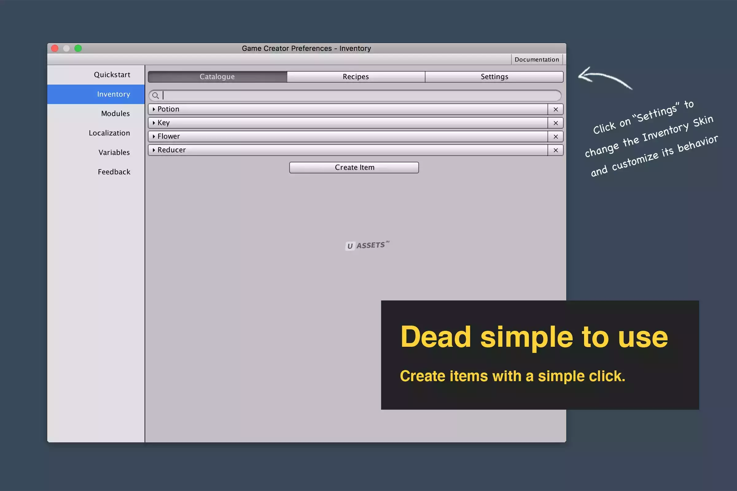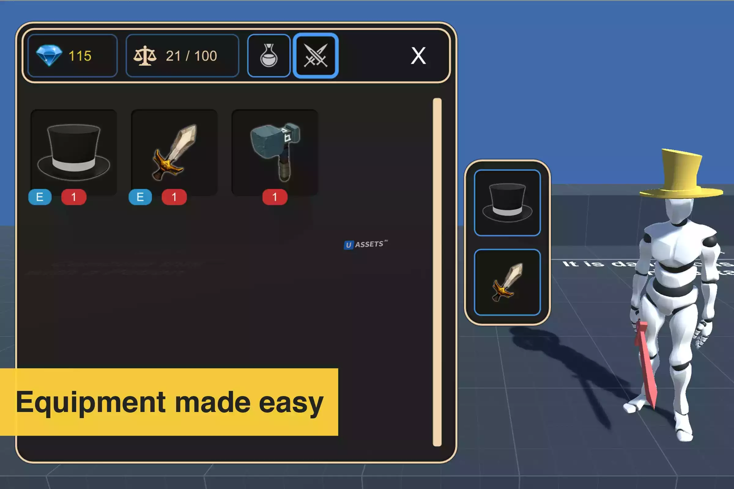 - Легко оснащайте своих персонажей предметами - Настраиваемый пользовательский интерфейс инвентаря