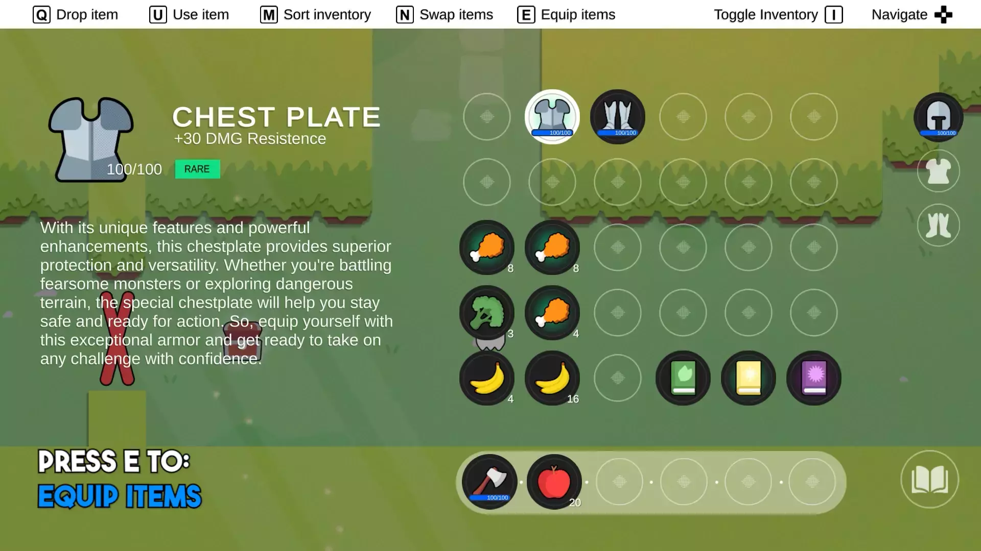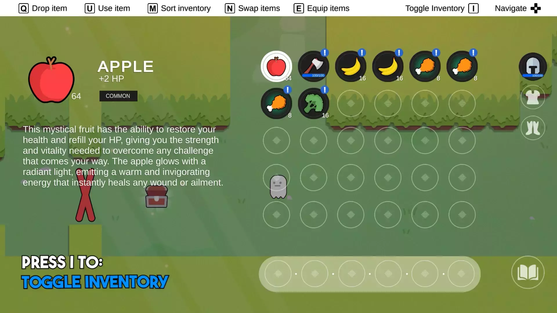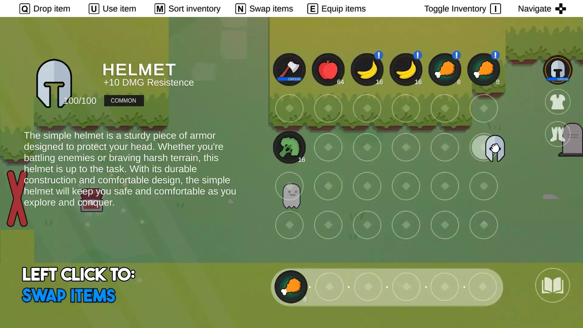 Меняйте местами предметы, когда инвентарь открыт и/или закрыт (настраиваемый). Эта операция также может быть выполнена с помощью мыши, если опция включена