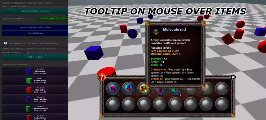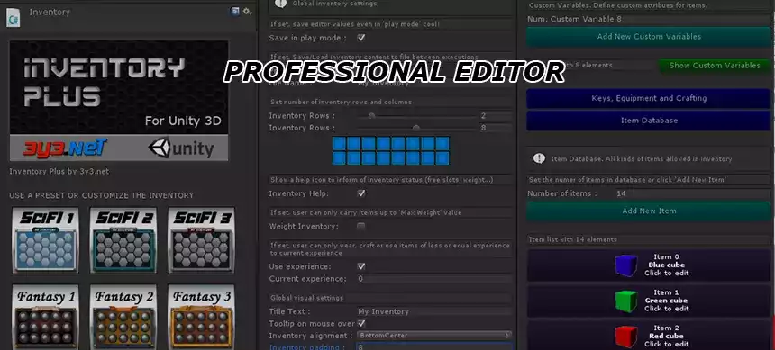 Inventory Plus был разработан, чтобы охватить все фундаментальные аспекты любой системы инвентаря, будь то ролевая игра, приключение, шутер от первого лица или любая другая игра. Предоставляя вам полный контроль и профессиональный визуальный результат.