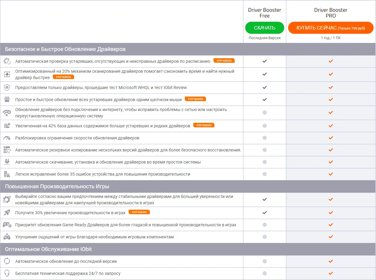 - Использование только драйверов, прошедших проверку Microsoft WHQL и внутренний тест IObit.