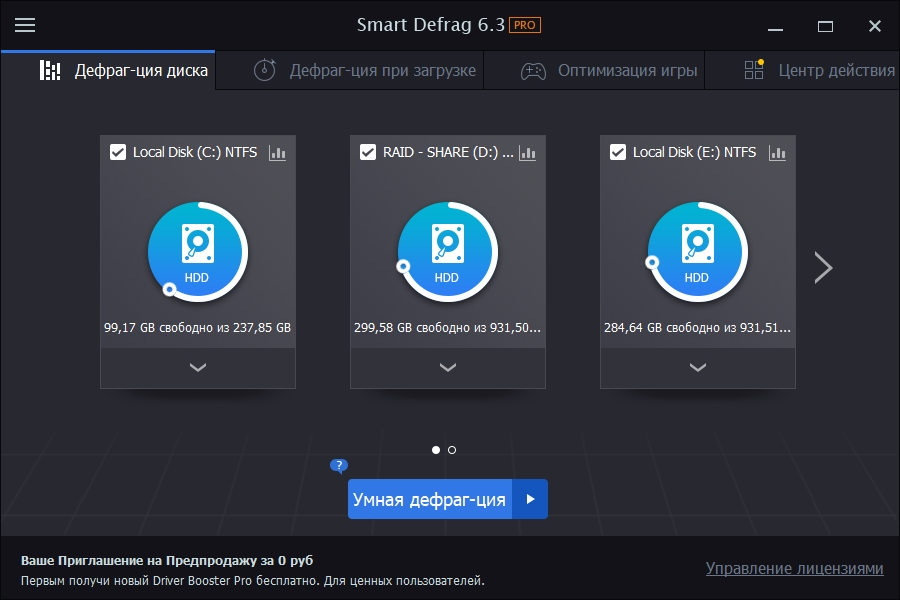 Smart Defrag Pro - это профессиональная версия программного обеспечения для дефрагментации жесткого диска, но кроме своих прямых обязанностей инструмент умеет более направленно оптимизировать игры и приложения, чем и выделяется на фоне своих конкурентов.