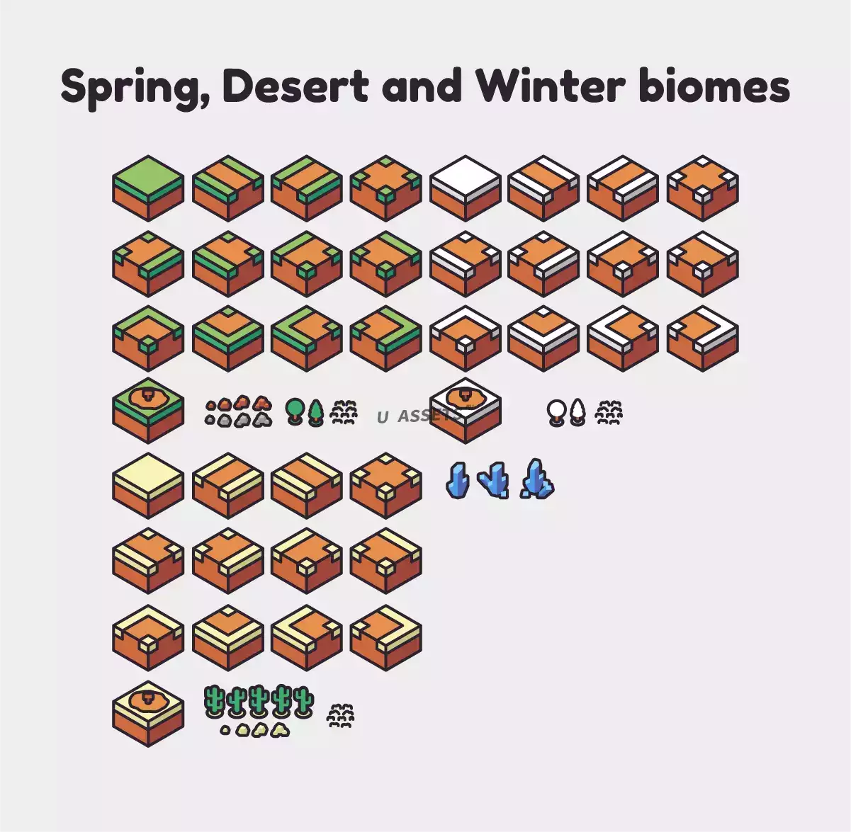 -3 биома суши (Весна, пустыня и зима). Он включает в себя дороги, деревья или кактусы, место для строительства и 3 уровня кристаллов;