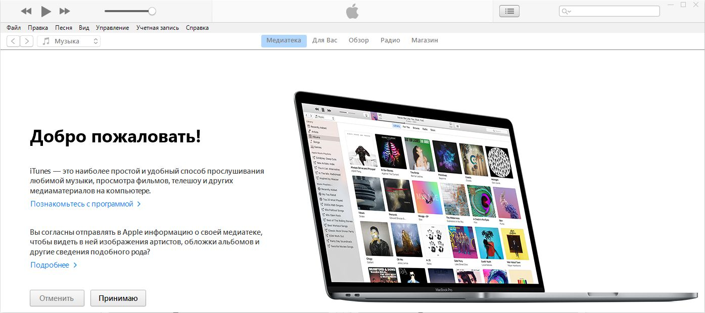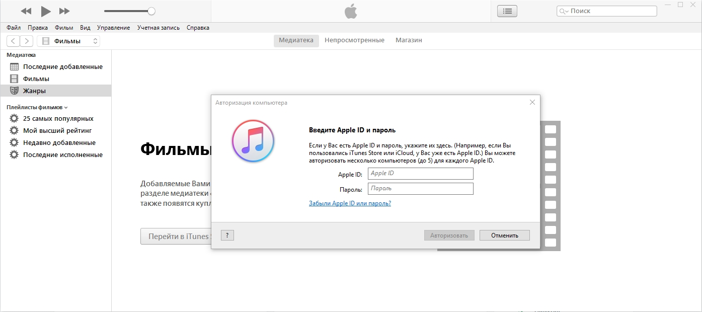 Создайте или войдите в свою учетную запись Apple ID, чтобы получить доступ ко всем функциям iTunes.