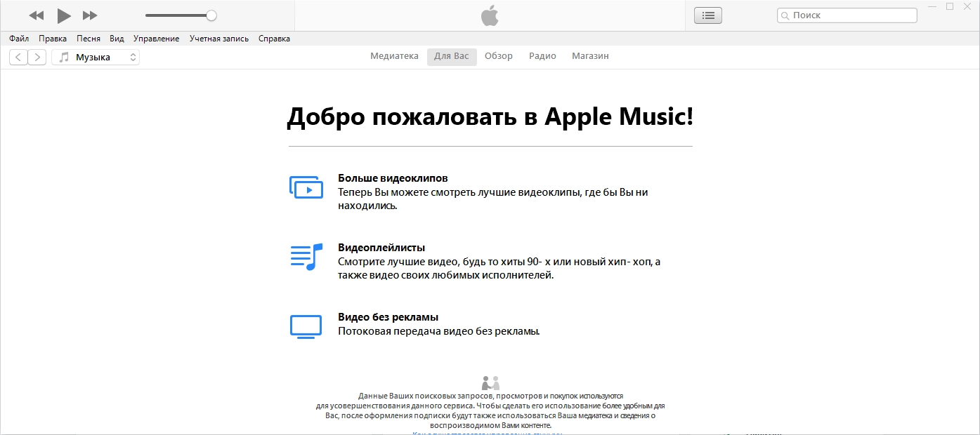 Подключение к интернету: Для доступа к iTunes Store и Apple Music требуется подключение к интернету.