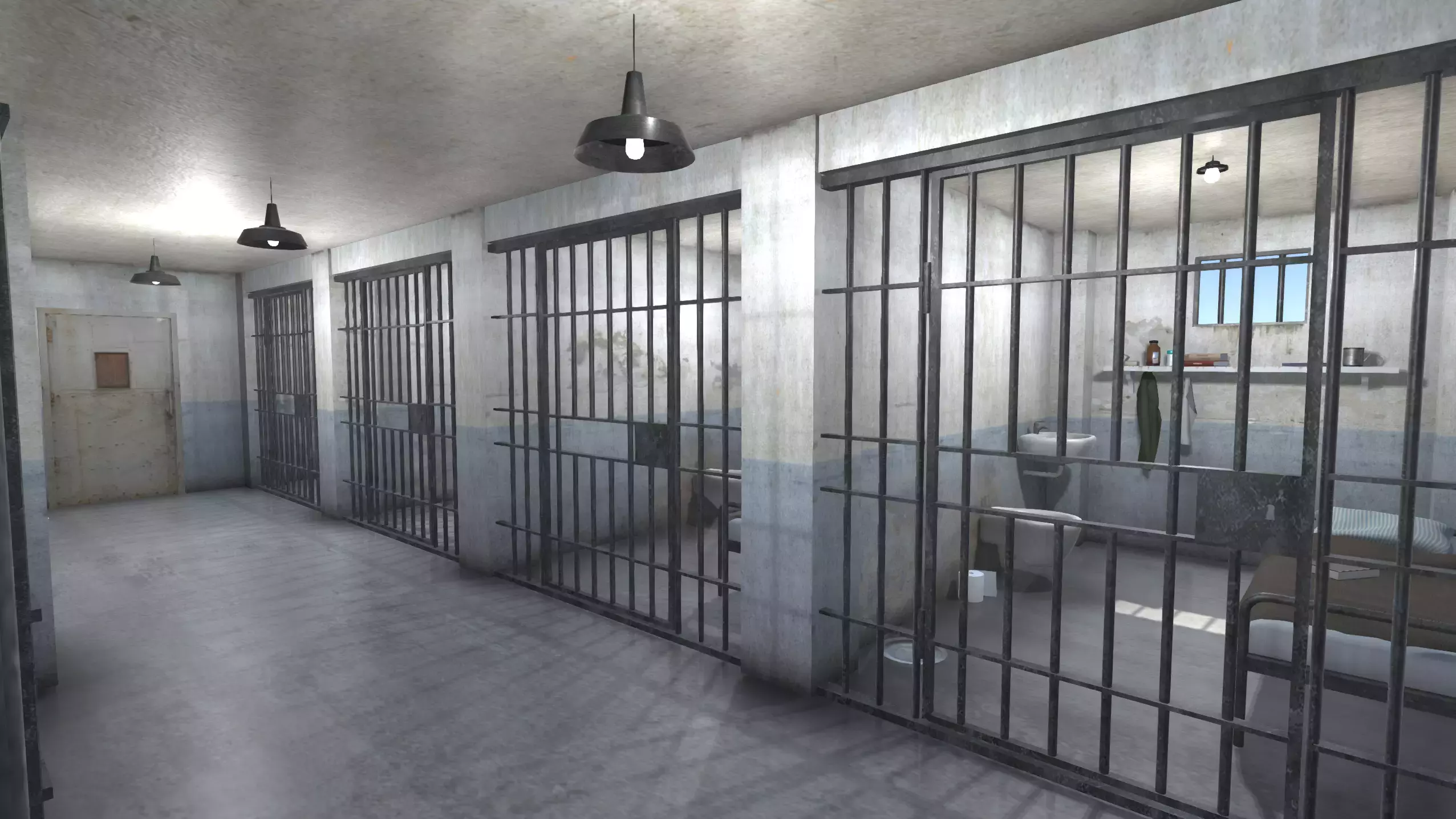Интерьер тюрьмы - это реалистичная сцена с 42 моделями, готовыми для 3D-проектов и игр.