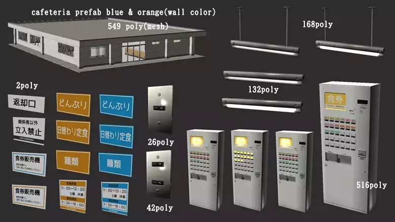 С помощью этого пакета вы можете создать "японскую школьную столовую". С помощью этого пакета вы можете создать "японскую школьную столовую". Эффекты изображения не включены. Этот пакет содержит: - 54 типа объектов. - 10 плиточных текстур. - 1