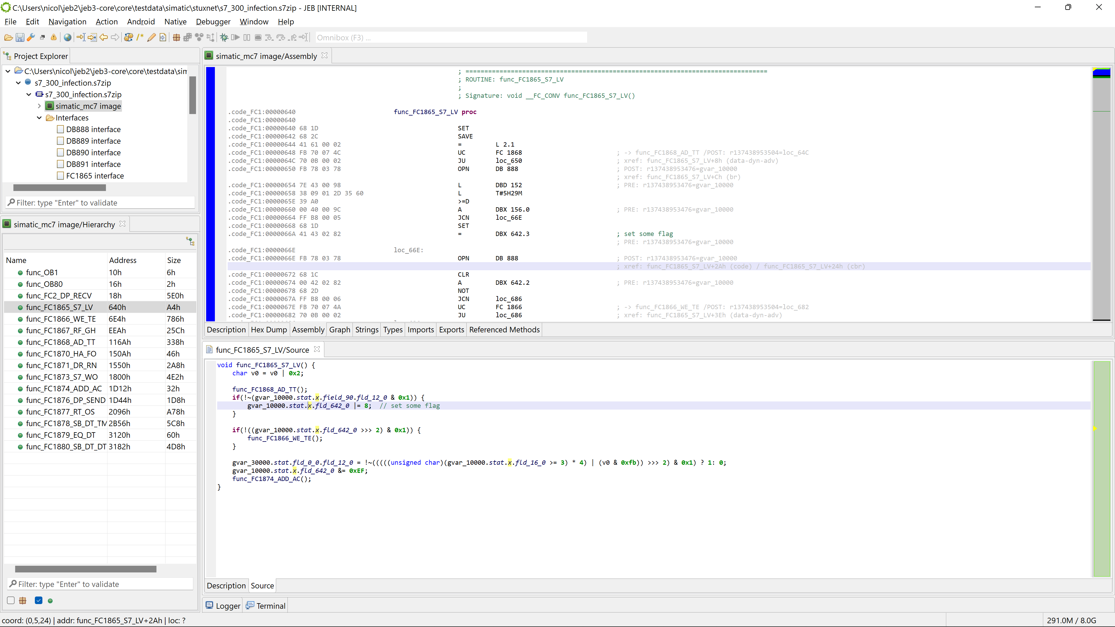 Анализ обфусцированного кода: JEB эффективно работает с обфусцированным кодом, пытаясь восстанавливать исходные имена переменных и методов, а также декодировать зашифрованные строки.