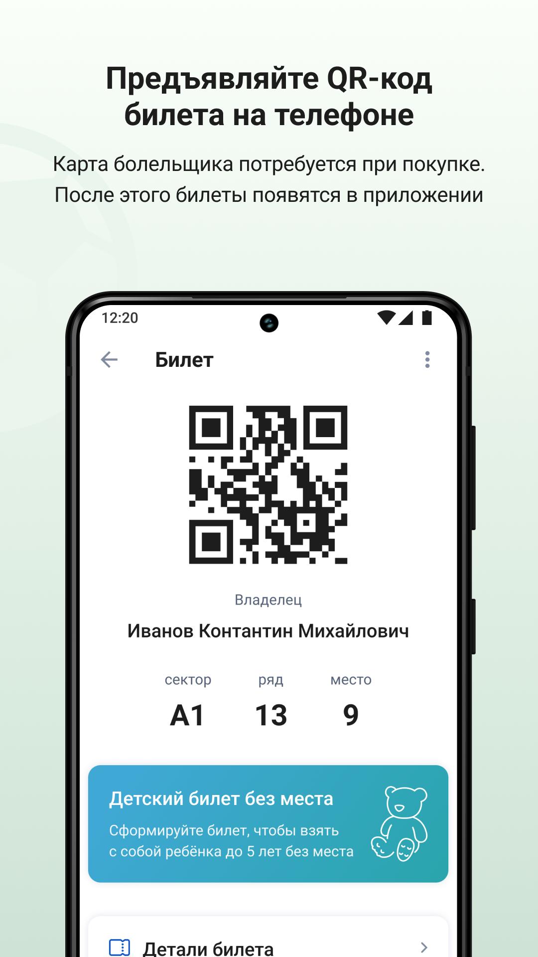 - Электронные билеты: Для прохода на стадион достаточно предъявить QR-код своего билета или билетов ваших детей, что делает процесс быстрым и удобным.