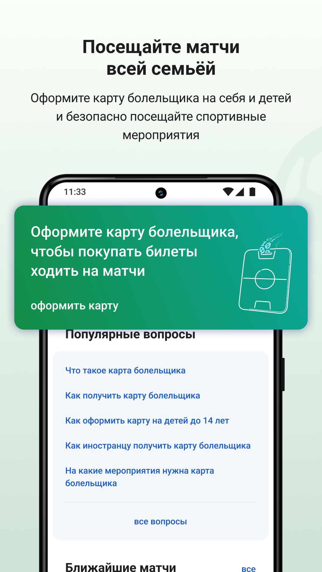 - Оформление карты: Легко оформите «Карту болельщика» для себя и для детей младше 14 лет прямо в приложении.