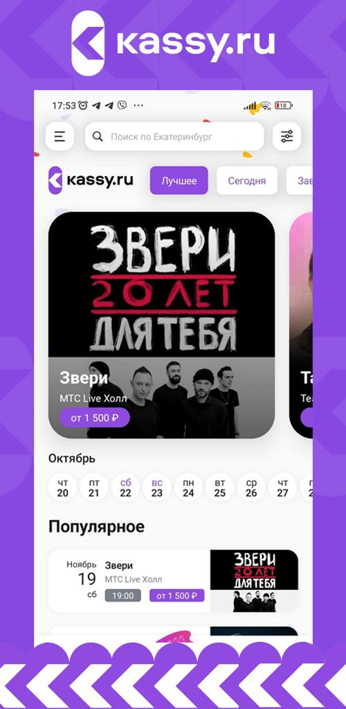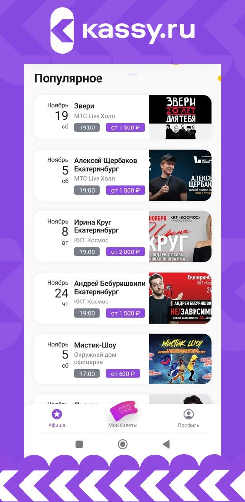 KASSY.RU 0.9.39 представляет собой современное и удобное приложение для покупки билетов. Это цифровое пространство позволяет легко и быстро приобретать билеты на самые разные мероприятия.