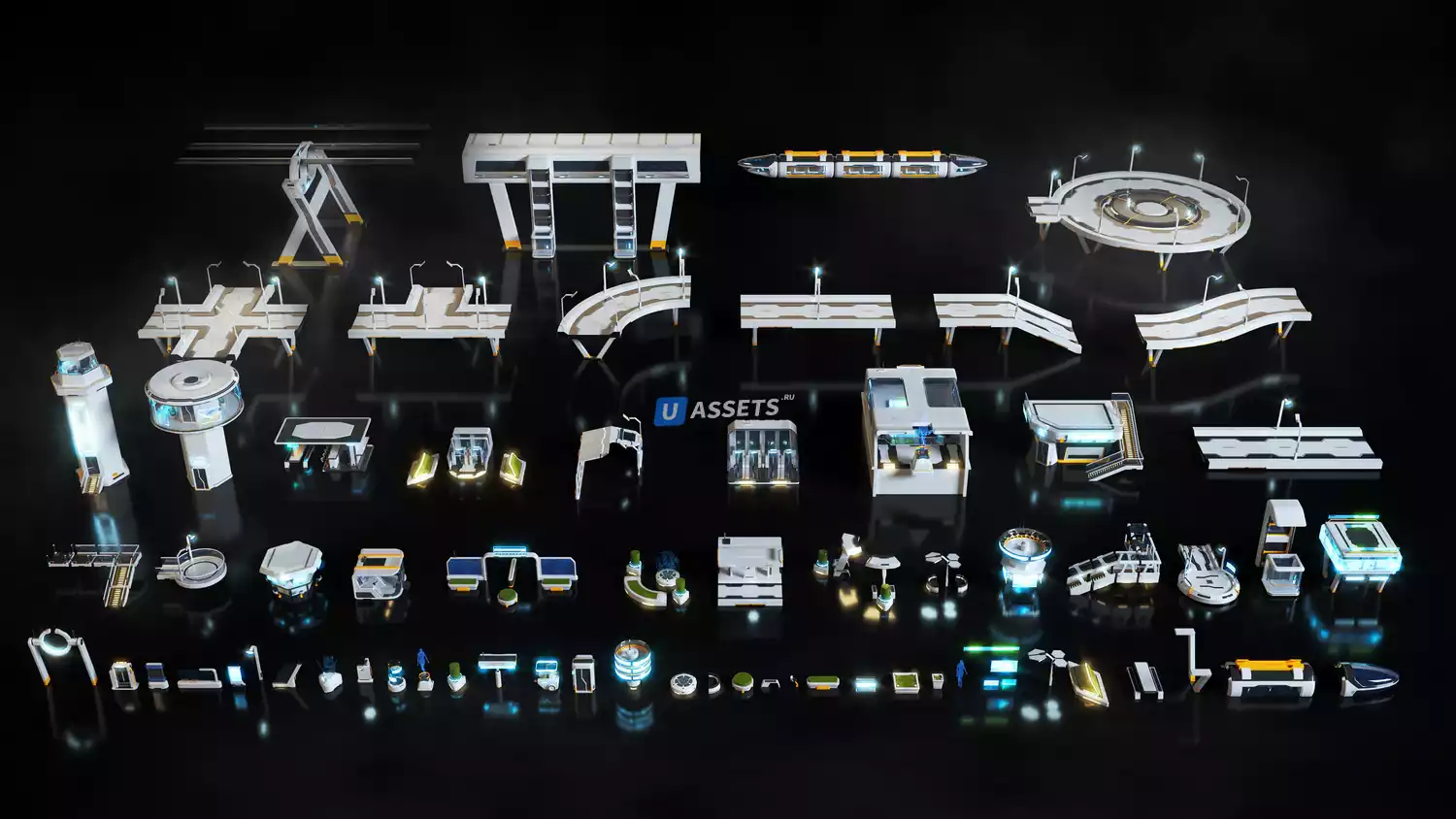 Воплотите в жизнь свои яркие утопии и будущие высокоразвитые цивилизации с помощью высокоскоростного монорельса, голографических панелей управления, башен со стеклянными экранами, узлов связи, технологических камер, капсул в вакуумной упаковке и многих других высокодетализированных реквизитов и интерьеров! Наполните улицы своей научной фантастикой, осветите тротуары своего высокотехнологичного будущего и представьте себе будущее скорости, эффективности и порядка.