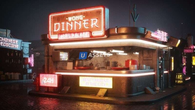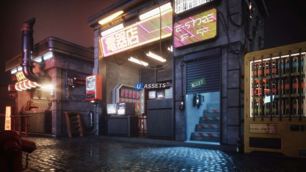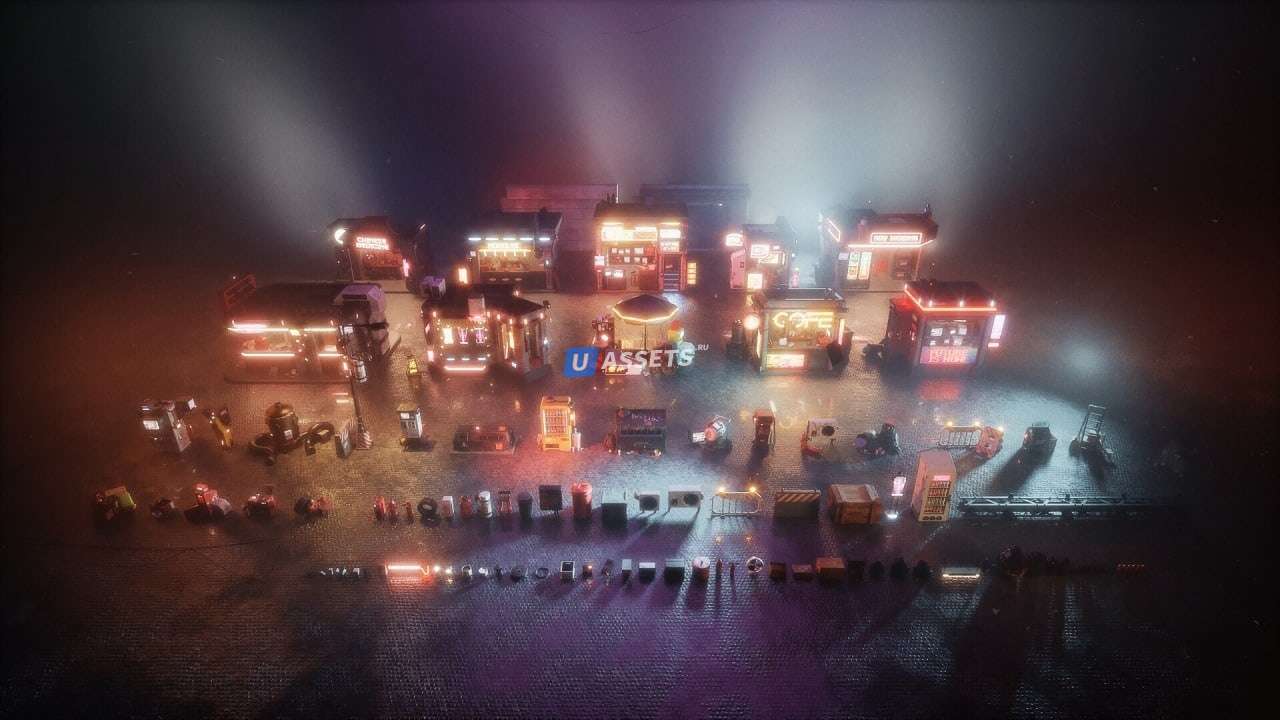 Населите улицы ваших киберпанковских миров тоннами киосков, витрин магазинов, продуктовых ларьков, отдельно стоящих машин, случайных уличных загромождений, радиаторов, дорожных столбов, бутылок, сковородок, кастрюль, банок и многого другого! Крупные детали этого набора также имеют детализированные интерьеры, которые будут хорошо работать в любом из ваших научно-фантастических или антиутопических миров!