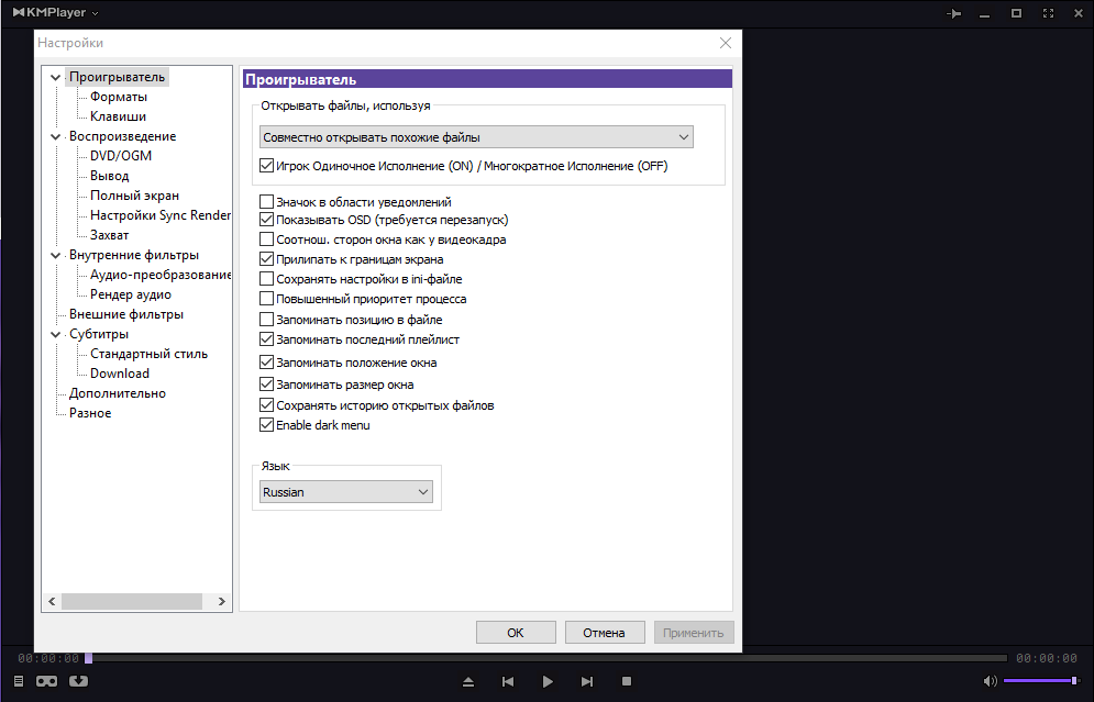 KMPlayer (КМП Плеер) – Видео и аудио проигрыватель, поддерживающий широкий спектр кодеков и форматов. Он также имеет полную функциональность для воспроизведения DVD, VCD, AVI, MKV, Ogg Theora, OGM, 3GP, MPEG-1/2/4, WMV, RealMedia и QuickTime.