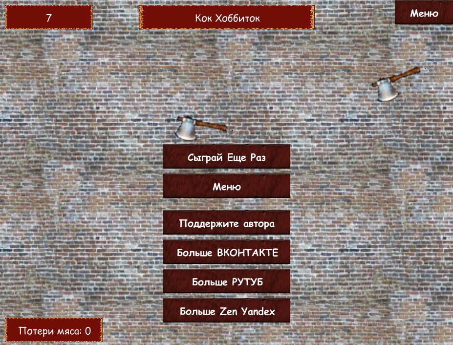 В приложении КОК ХОББИТОК 0.0.1 игрокам предстоит динамичная задача — быстро разрезать ребра ровно пополам. Скорость выполнения напрямую влияет на количество набранных очков, создавая азартный игровой процесс. Важно не только действовать быстро, но и аккуратно, чтобы лезвие не затупилось от случайного контакта с топором.