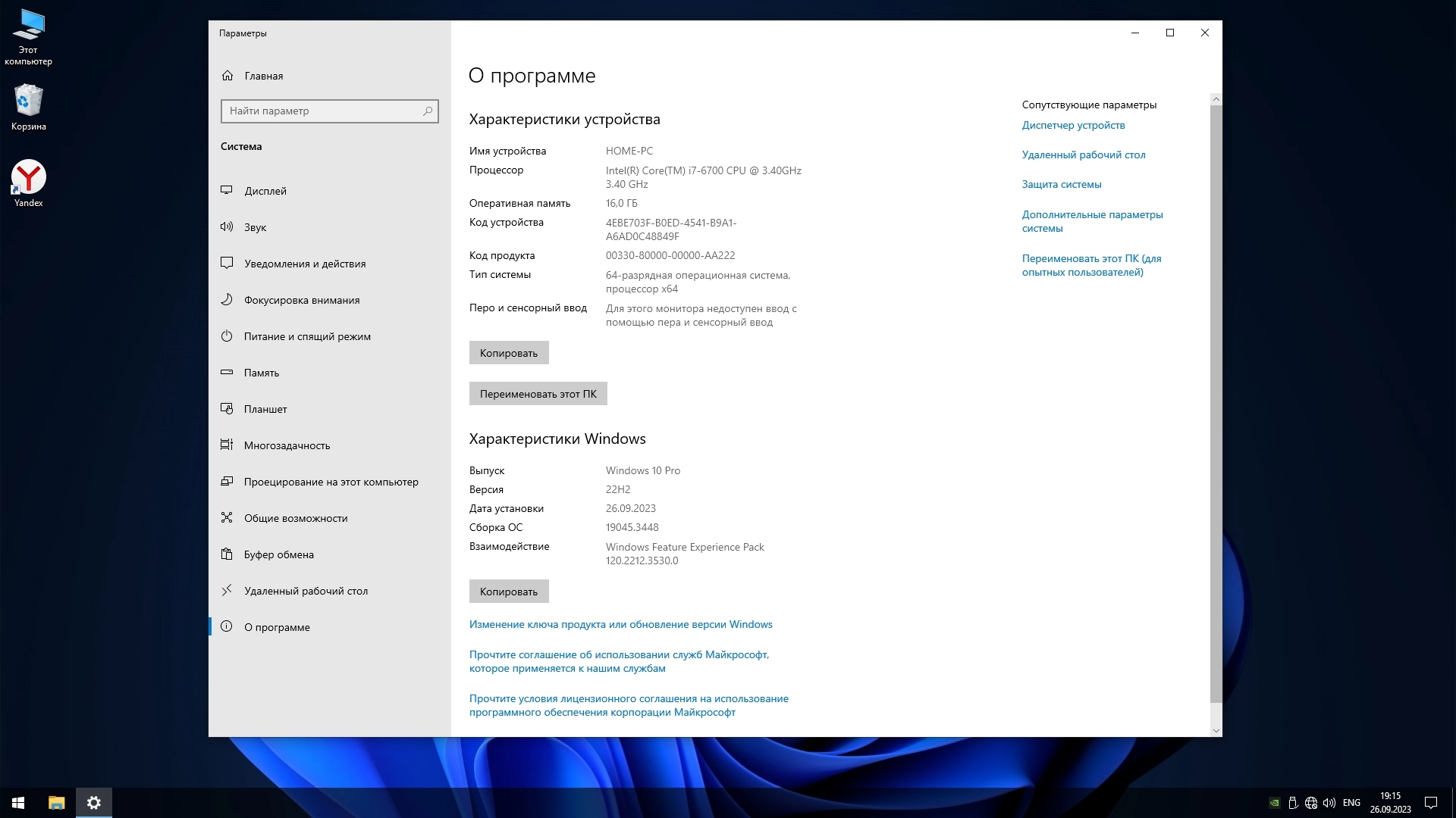 - Установка производить на ОС Windows 10 Pro, Build 22H2, версии выше 19045.3448.
