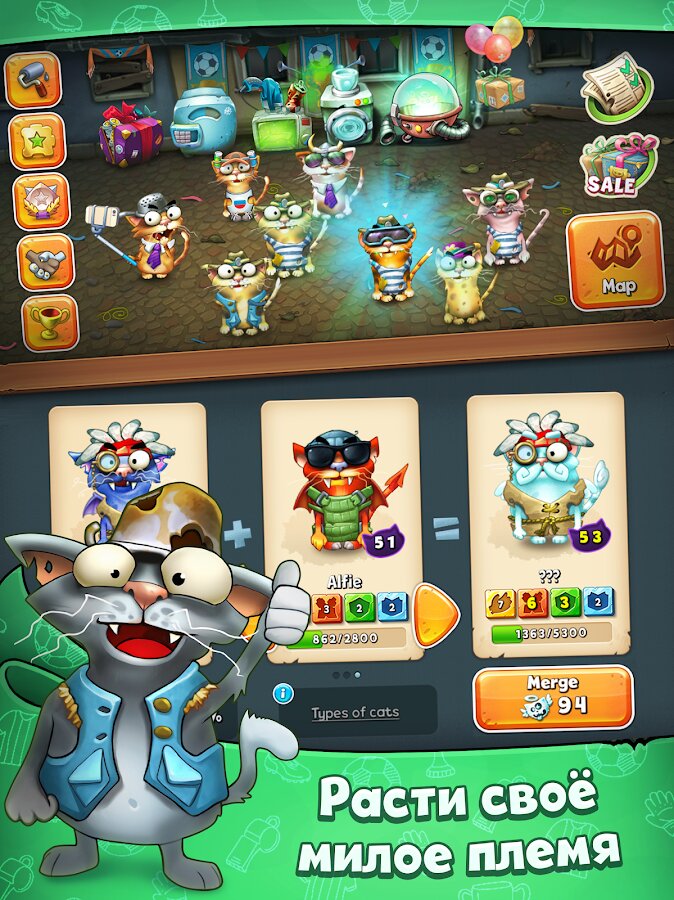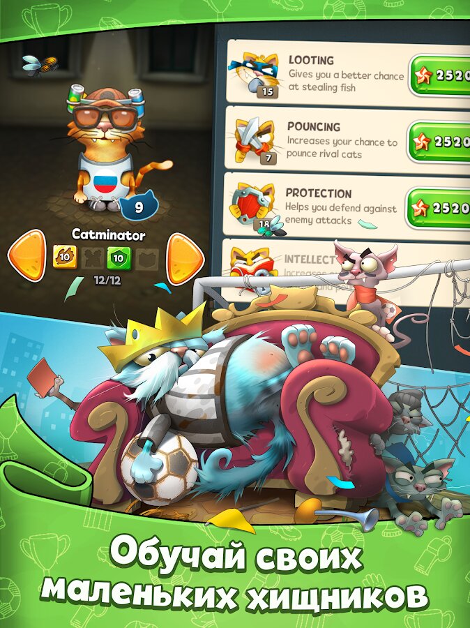В основе КОТЫ – ДВОРОВЫЕ РАЗБОРКИ 4.27.00 лежит глубокая стратегическая составляющая. Каждому коту можно присвоить уникальную роль — сделать его ловким вором, свирепым бойцом или ценным добытчиком ресурсов. Тренируйте своих питомцев, скрещивайте их для получения улучшенного потомства с выдающимися способностями и экипируйте найденными предметами, чтобы увеличить мощь всего племени.