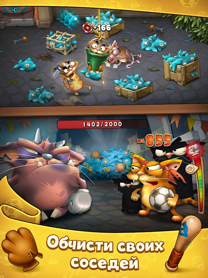 КОТЫ – ДВОРОВЫЕ РАЗБОРКИ 4.27.00 — это увлекательная смесь стратегии и симулятора, где вы возглавите банду пушистых бойцов в борьбе за господство в городских джунглях Вискертауна. Ваша цель — создать сильнейшее котоплемя, воровать рыбу, сражаться с соперниками и привести своих подопечных к процветанию. Приложение предлагает разнообразные PvP-режимы: от дуэлей один на один до масштабных клановых войн.