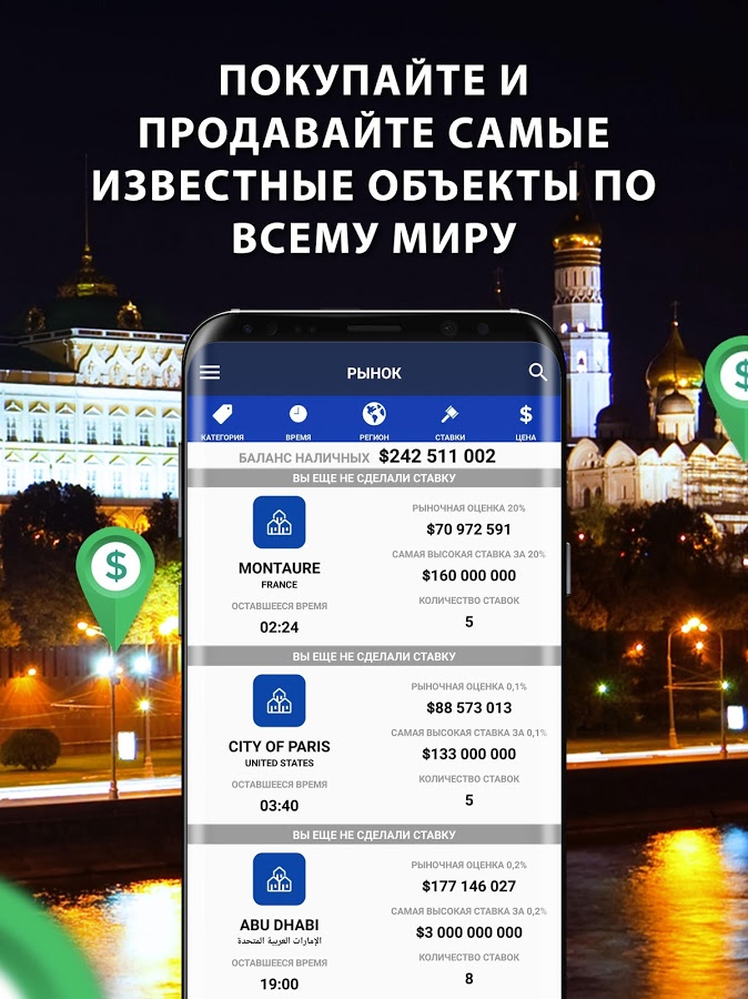 Ваша цель — построить финансовую империю с нуля. Начните с инвестиций в небольшие местные объекты, получайте от них прибыль и постепенно расширяйте свой портфель, чтобы в итоге владеть самыми известными мировыми достопримечательностями. Каждое ваше решение влияет на развитие вашего капиталистического предприятия.