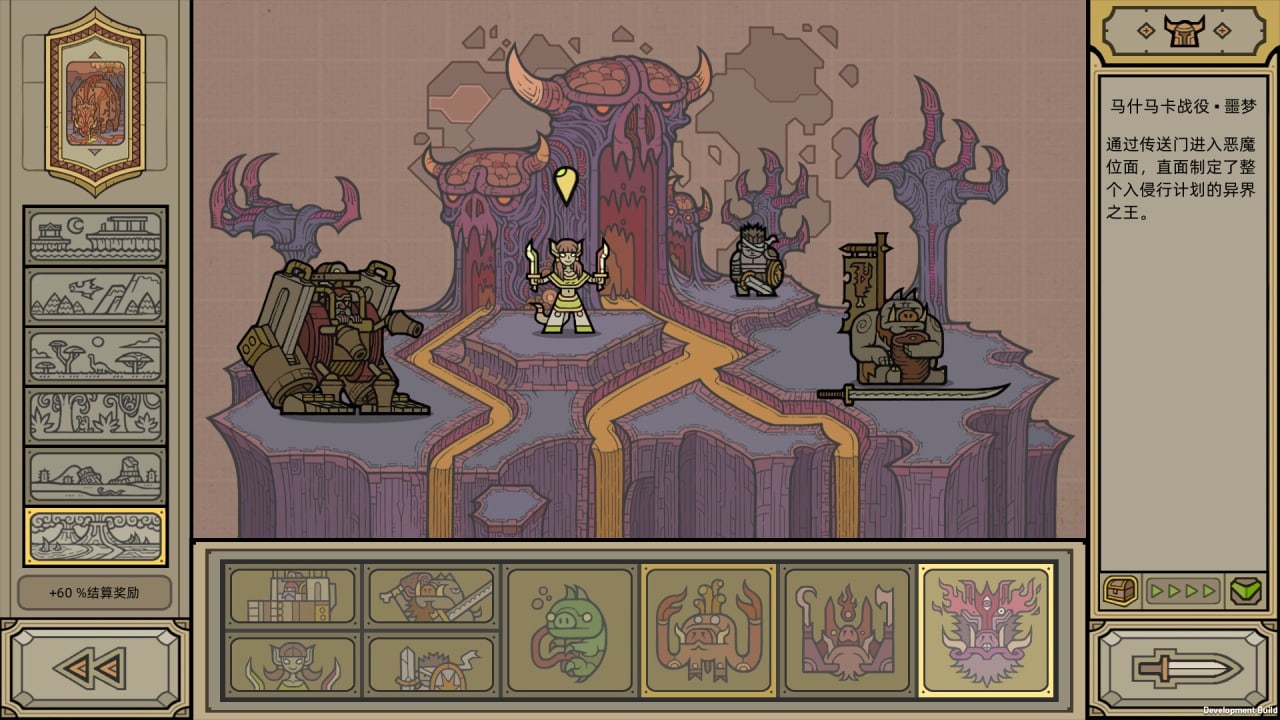 Третий обучающий бой знакомит с системой рун, играющих ключевую роль в формировании вашей армии. Руны отображаются в верхней части экрана, предоставляют различные эффекты и могут быть рассеяны. Например, стрелковые руны позволяют атаковать врагов с безопасного расстояния. Чем больше таких артефактов у вас есть, тем дальше может быть ваша атака. Также руны можно «наложить» на своих наемников, чтобы те получили их силу. Для улучшения навыков героя и повышения уровня рун используются очки талантов.