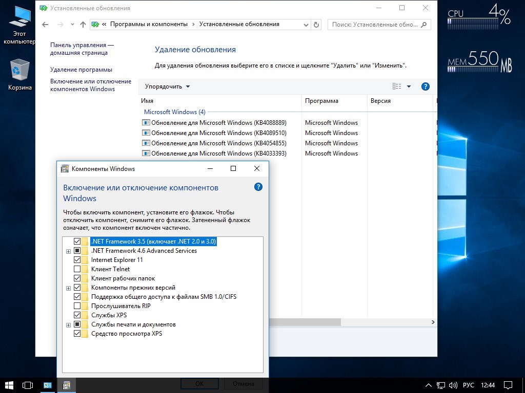- Отключены параметры автоматической установки OneDrive и поиск Windows Update.