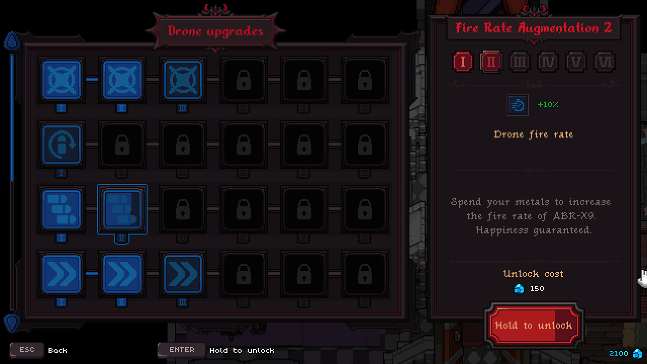 За успешное прохождение Ритуалов в игре начисляются валюта и материалы, необходимые для постоянного улучшения героини и ее снаряжения на центральной базе. Хаб служит не только арсеналом, но и местом для диалогов со спутниками: механиком Амабель, экспертом по темной магии Орсоном и вампиром Люсьеном, который обеспечивает ресурсную поддержку. Для победы в испытаниях важны не только правильно подобранные улучшения, но и мастерство игрока — меткость, своевременные увороты и точные рывки.
